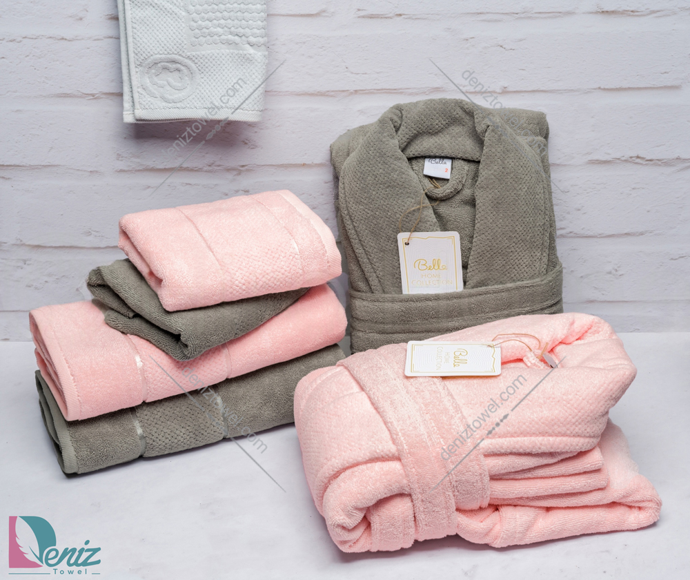 حوله ست دو نفره طرح ماکرو رنگ گلبهی و سدری تیره را می توان به جرئت جزو اعلا ترین ست های حوله زنانه و مردانه در بازار دانست، یک ست صادراتی که با توجه به جنس و کیفیت بسیار بالایش اعتماد بسیاری از مصرف کننده ها را جلب نموده است، این ست دو نفره دارای ۱۱ تکه حوله کاربردی شامل: دو عدد حوله تن پوش، دو عدد حوله استخری، دو عدد حوله دستی، دو جفت دمپایی حوله ای و یک عدد زیرپایی می باشد که از جنس مخمل کتان بوده و از لحاظ آب گیری و وزن نیز استاندارد می باشد.