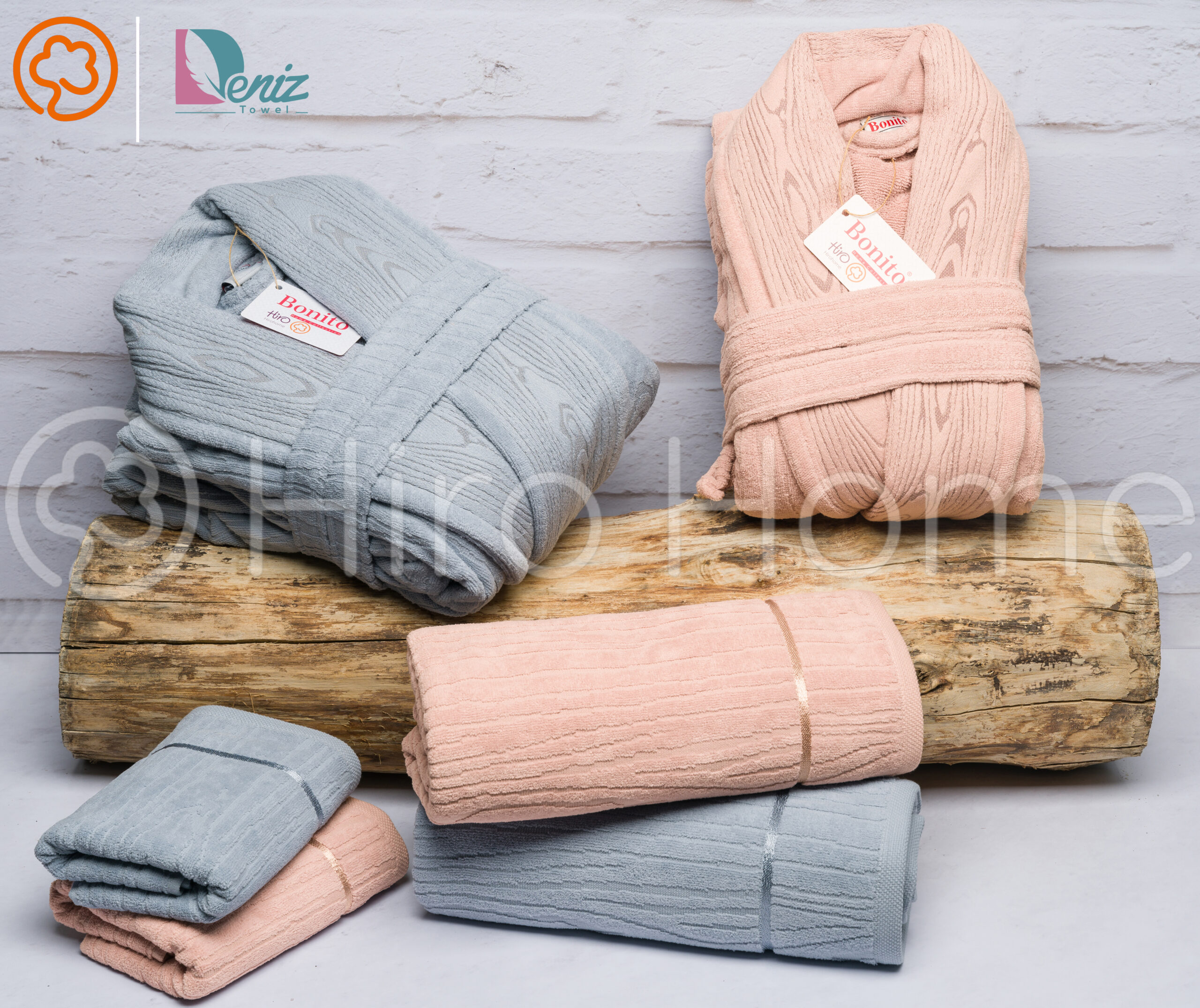 | تکه ها | دو عدد حوله تن پوش، دو عدد حوله دستی، دو عدد حوله استخری، دو جفت دمپایی حوله ای |