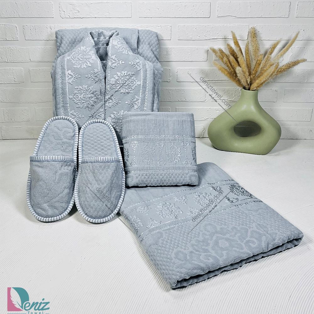 حوله ست یک نفره ژاکارد رنگ طوسی – یک انتخاب کامل برای تجربهای لوکس و هماهنگ