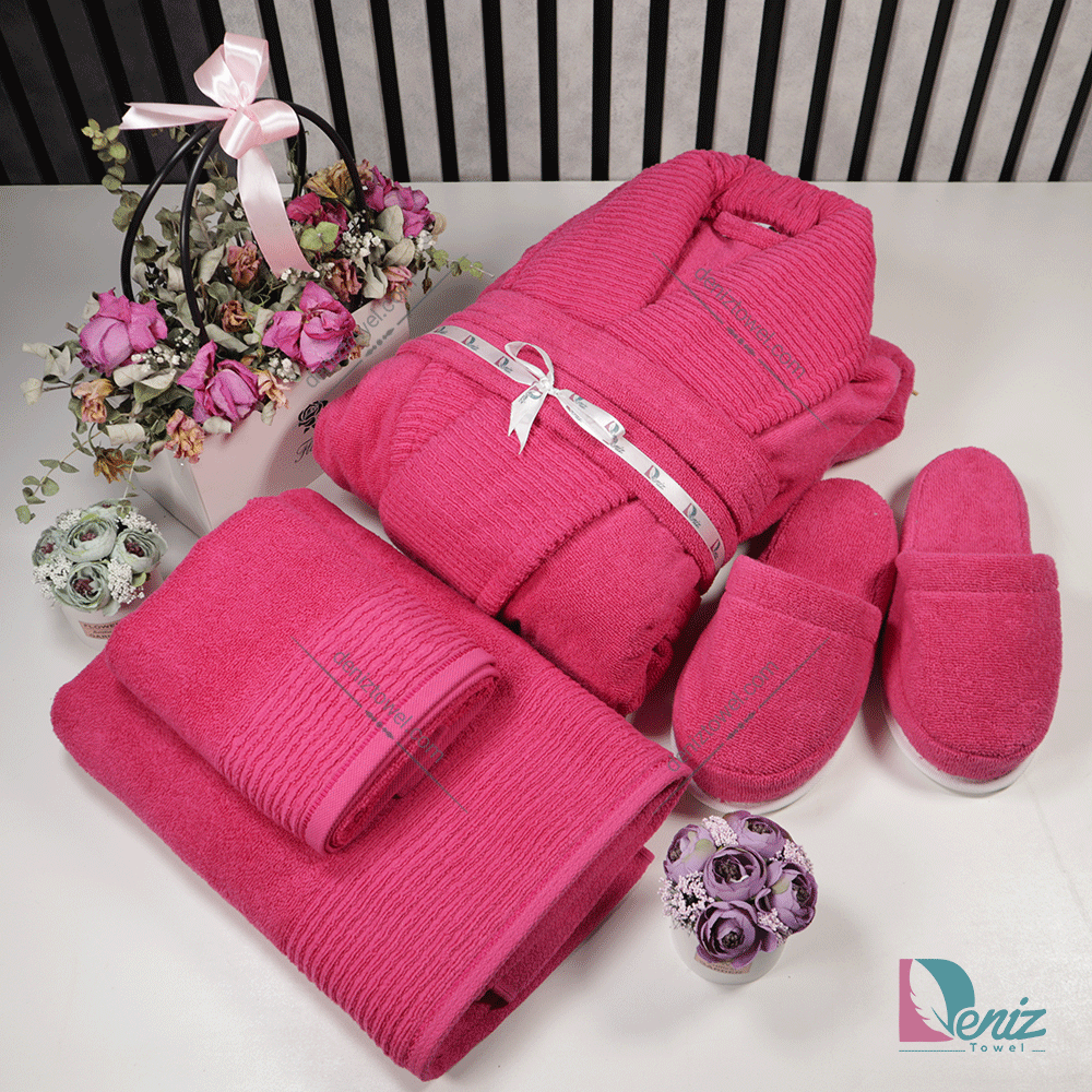 | تعداد تکه | ۴ تکه: حوله تن پوش، یک جفت دمپایی حوله ای، حوله دستی، حوله استخری |