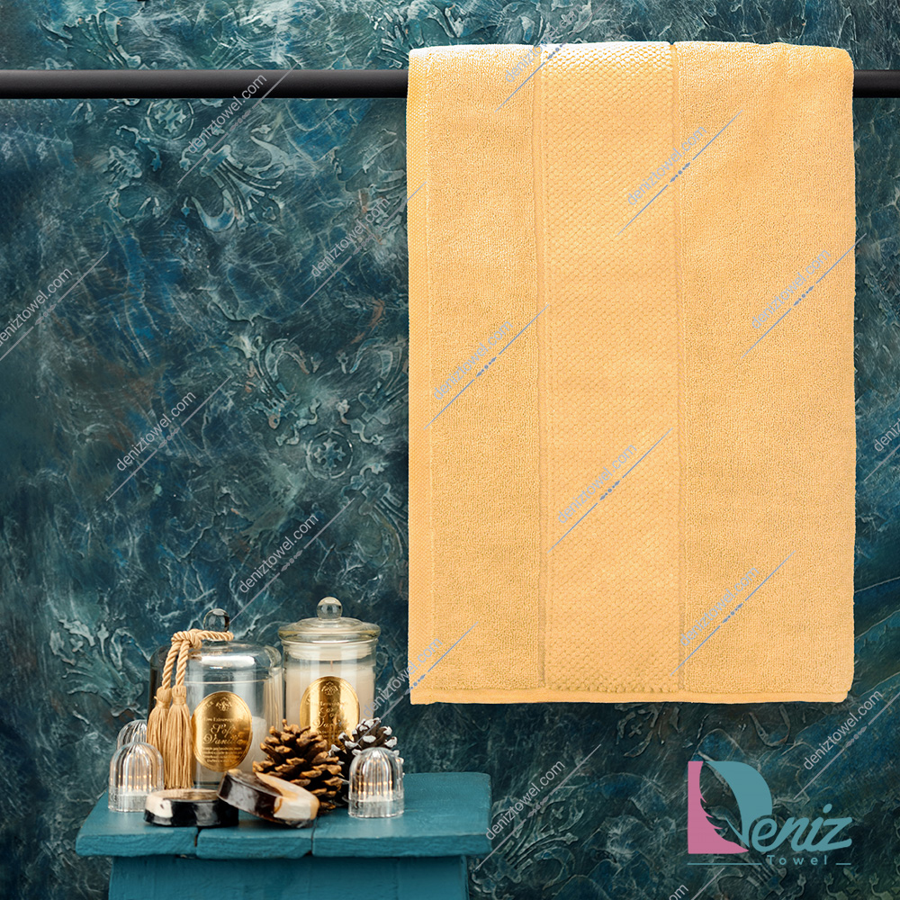 حوله حمامی طرح ماکرو رنگ انبه ای یکی از انواع مختلف حوله های ابعادی می باشد که با ابعاد 150 سانتی متر برای طول و 100 سانتی متر برای عرض، طراحی و تولید شده است که می توان به عنوان حوله حمامی یا حوله استخری مورد استفاده قرار داد، این حوله دارای آبگیری بسیار بالایی می باشد که این مزیت مهم را مرهون جنس پنبه ای نخ شماره بیست دو لایی است که در بافت این حوله به کار رفته است. برای شست و شوی این حوله می توانید از ماشین لباسشویی البته با آب 30 درجه و مایع لباسشویی استفاده کنید و به هیچ عنوان نگران تغییر رنگ، پرز دهی یا تغییر سایز حوله خود نباشید.