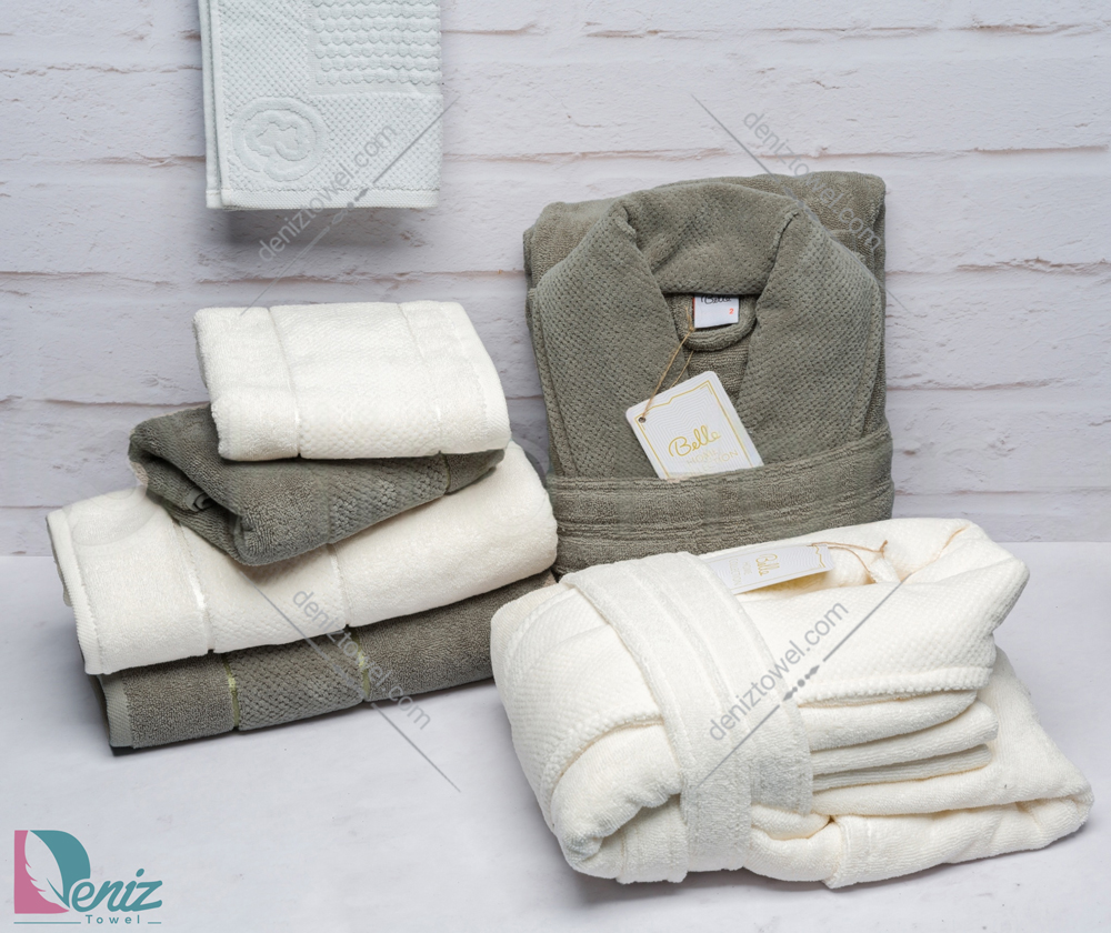 حوله ست دو نفره طرح ماکرو رنگ سدری و شیری را می توان به جرئت جزو اعلا ترین ست های حوله زنانه و مردانه در بازار دانست، یک ست صادراتی که با توجه به جنس و کیفیت بسیار بالایش اعتماد بسیاری از مصرف کننده ها را جلب نموده است، این ست دو نفره دارای ۱۱ تکه حوله کاربردی شامل: دو عدد حوله تن پوش، دو عدد حوله استخری، دو عدد حوله دستی، دو جفت دمپایی حوله ای و یک عدد زیرپایی می باشد که از جنس مخمل کتان بوده و از لحاظ آب گیری و وزن نیز استاندارد می باشد.