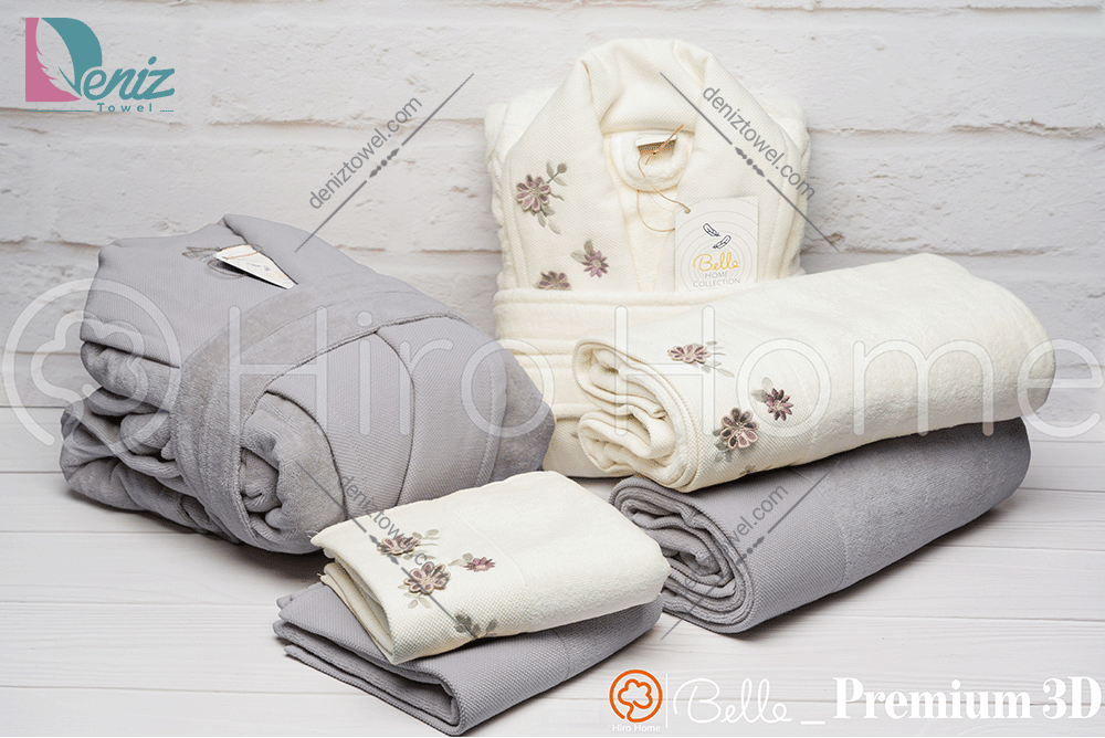 حوله ست دو نفره بلو گل برجسته رنگ شیری فیلی یکی از زیبا ترین ست های عروس و داماد در بازار دانست، یک ست که با توجه به جنس و کیفیت بسیار بالایش اعتماد بسیاری از مصرف کننده ها را جلب نموده است، این ست دو نفره دارای ده تکه حوله کاربردی شامل: دو عدد حوله تن پوش ، دو عدد حوله استخری ، دو عدد حوله دستی و دو جفت دمپایی حوله ای می باشد که تماما از جنس کتان مخمل بوده و از لحاظ آب گیری و وزن نیز استاندارد می باشد. همچنین داخل یک بسته بندی شیک تقدیمتان میشود.