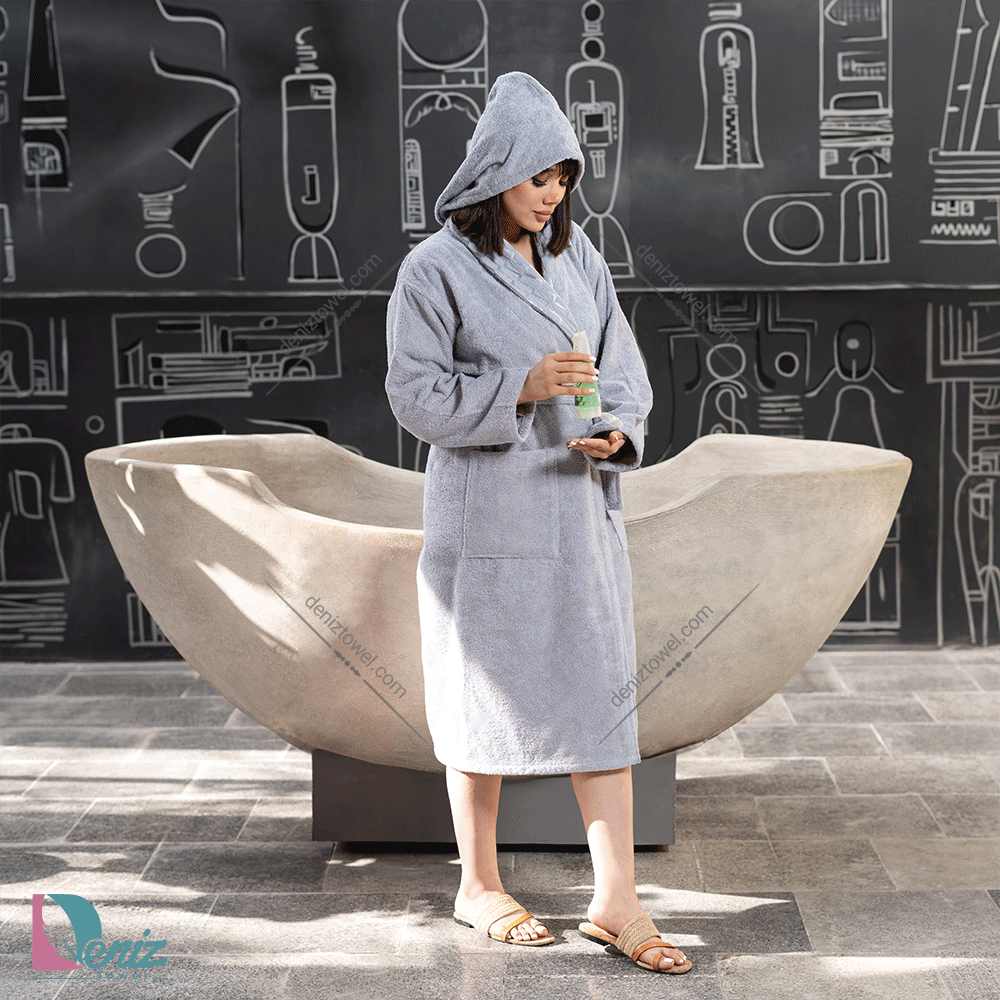 حوله تن پوش آرام رنگ نقرابی که به صورت حوله پالتویی کلاه دار به بازار عرضه شده است جزو بهترین حوله های موجود می باشد که به واسطه تولید از متریال های استاندارد و مرغوب، از لحاظ آبگیری و وزن بسیار ایده آل است. این محصول در ردیف محصولات صادراتی قرار گرفته و توانسته است طی سال ها اعتماد مشتریان محترم را کسب کند