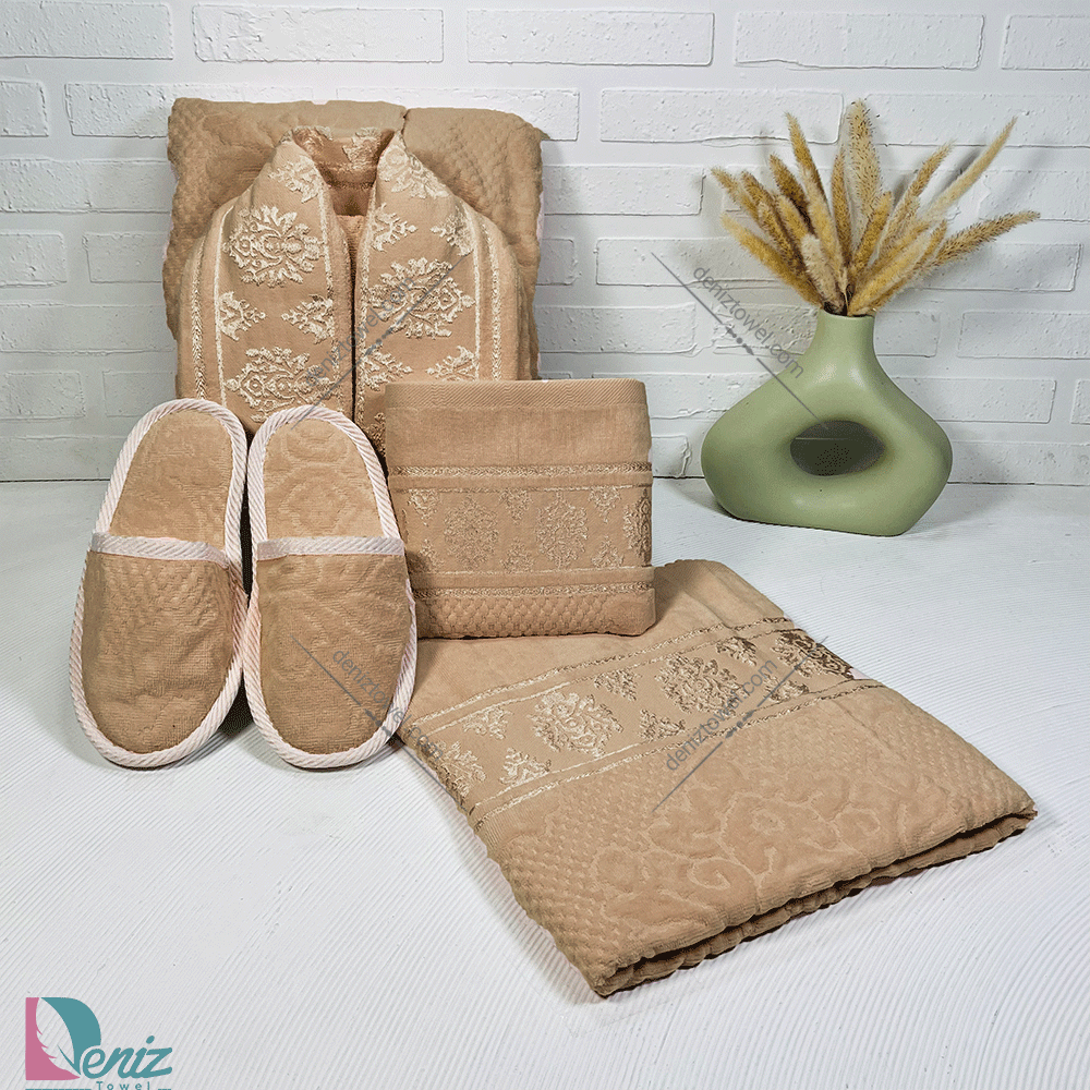 حوله ست یک نفره ژاکارد رنگ نسکافه ای – یک انتخاب کامل برای تجربهای لوکس و هماهنگ