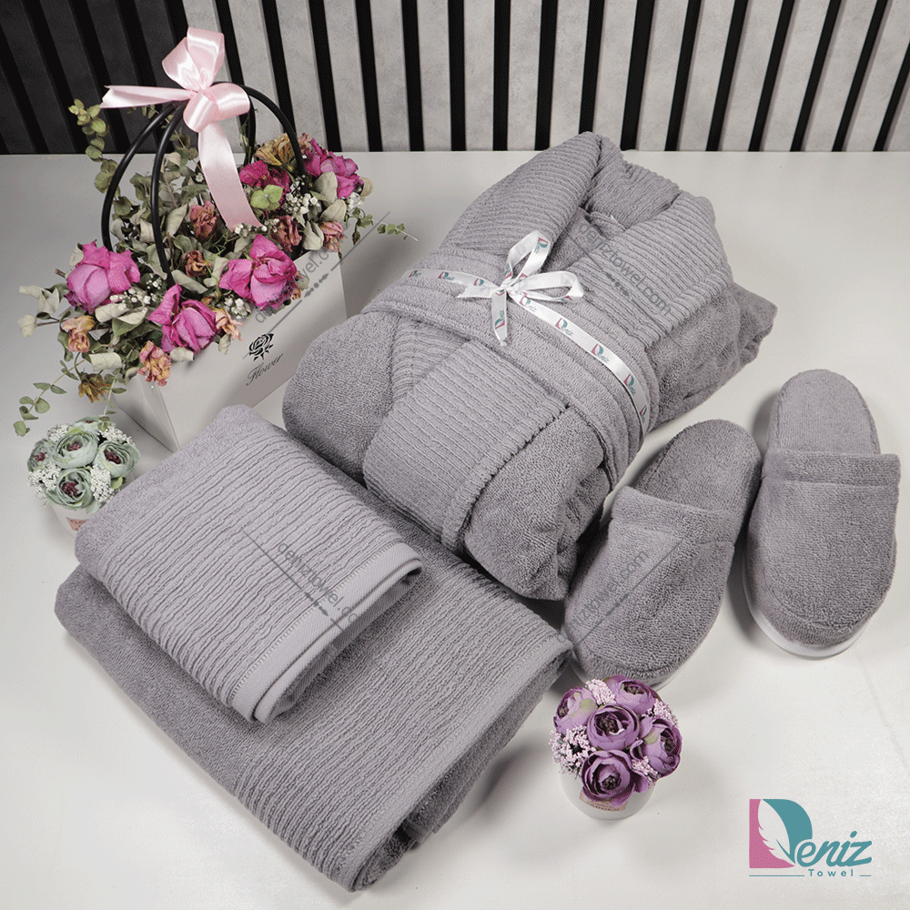 | تعداد تکه | ۴ تکه: حوله تن پوش، یک جفت دمپایی حوله ای، حوله دستی، حوله استخری |